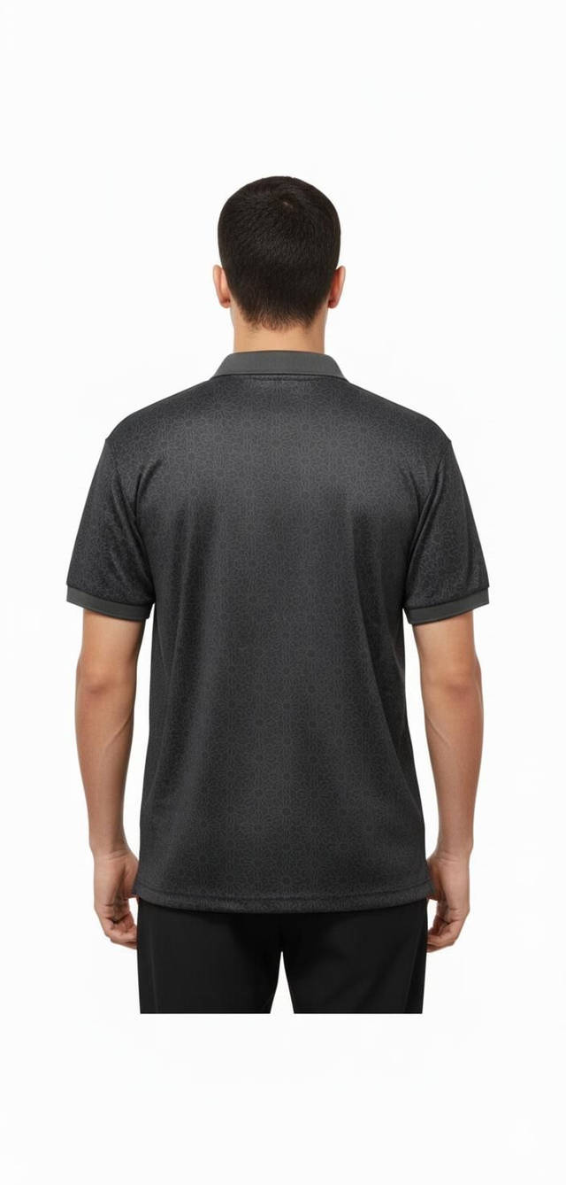 Distinctive Pattern: Breathable stretch fabric featuring a subtle, repeating abstract pattern in a dark grey/black tone.