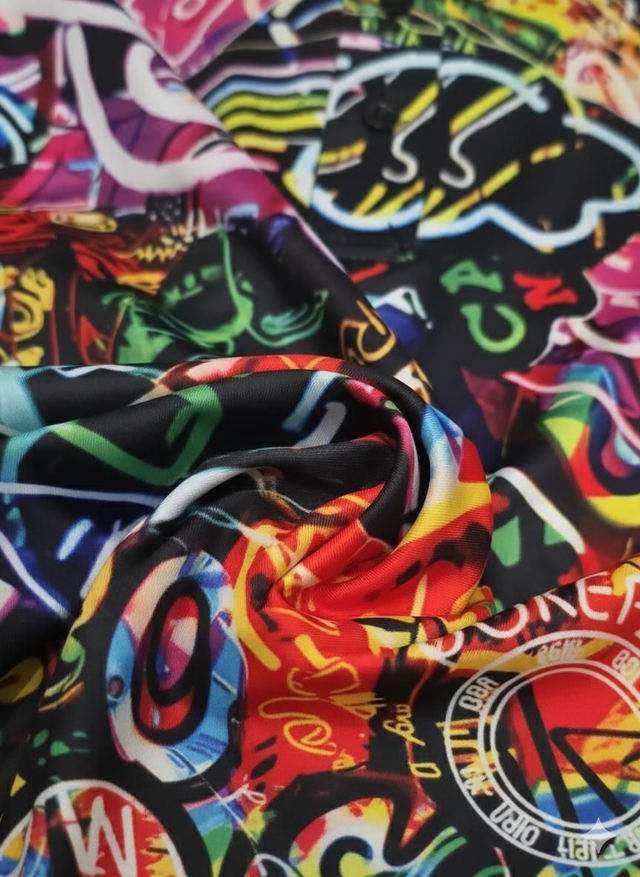 - High-Voltage Design: An intricate pattern of fluorescent colors and dynamic motifs—including music notes, abstract symbols, and stylized shapes—creates a bold, unforgettable look.