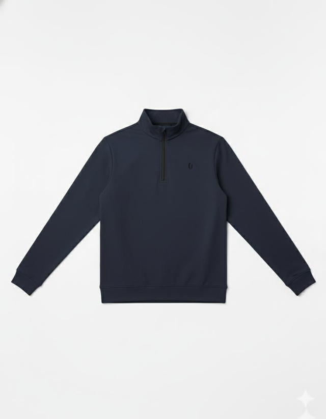 - 1/4 Zip Neck: Features a smooth, contrasting dark zipper that extends up to a comfortable high collar, offering adjustable ventilation and coverage.